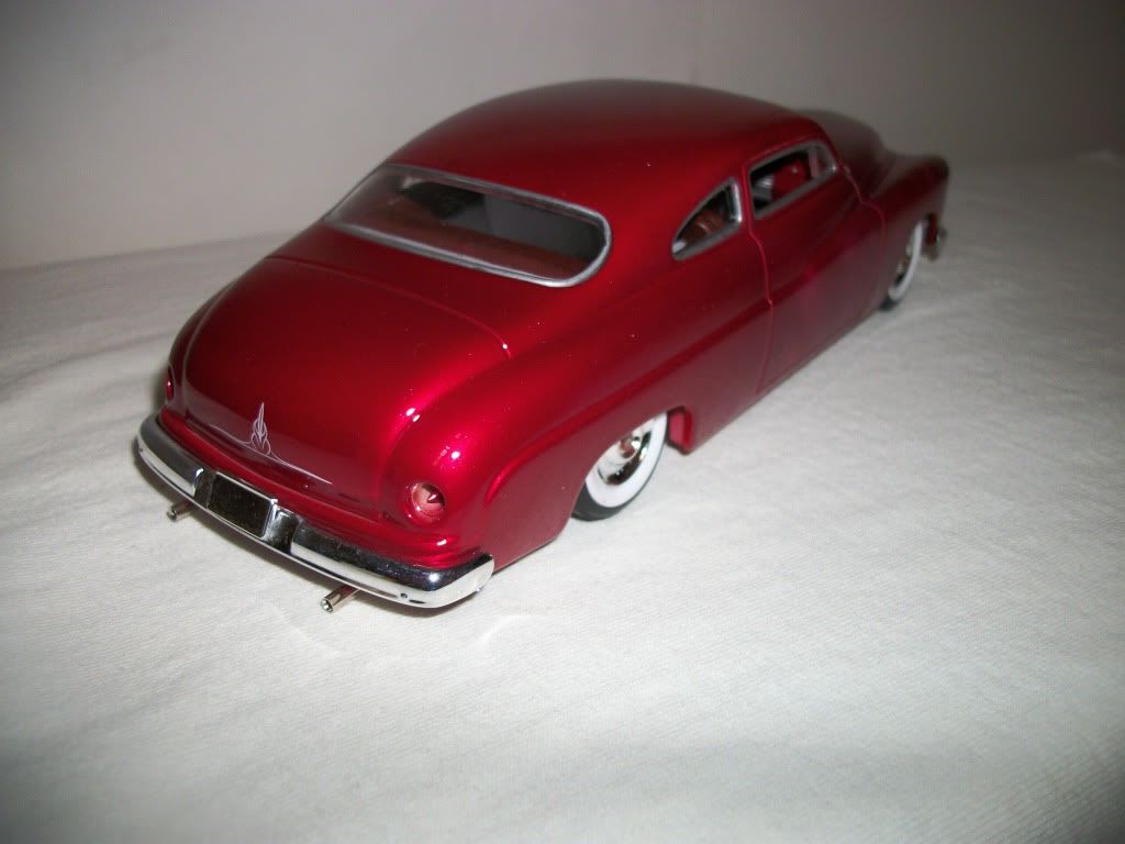 Heres my Latest build, it has scratchbuilt rear suspension, driprails have been shaved, and the gas tank has been relocated to the trunk. Its painted candy red over gold with airbrushed ghost flames. Thanks for lookin, all comments welcome! Billy
